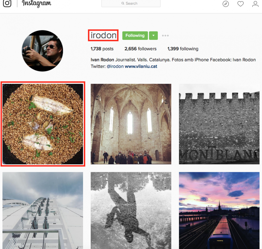 1) En primer lloc, anem a la nostra (o a la genèrica) direcció d’Instagram: (https://www.instagram.com/irodon).