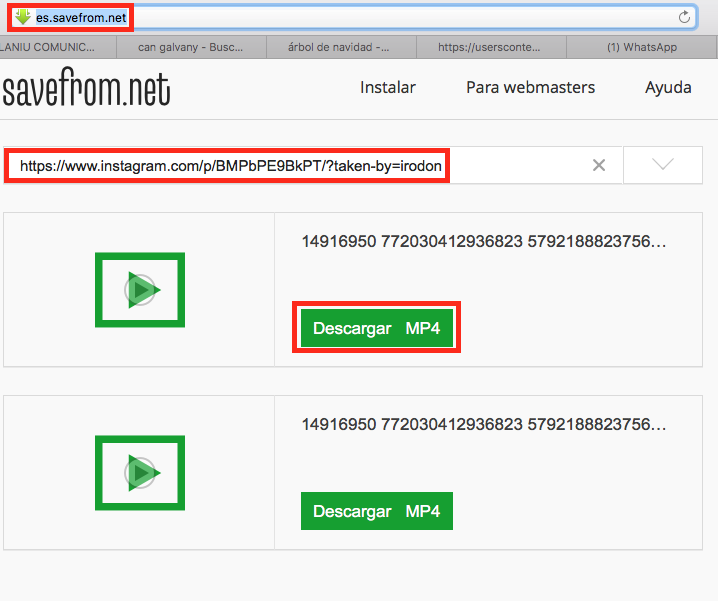 3) Seguidament anem a la pàgina http://es.savefrom.net i enganxem la URL seleccionada a l’espai on posa Descarregar MP4…i ja està.
