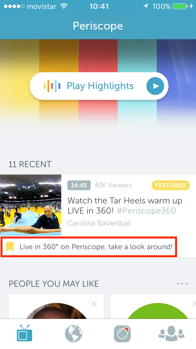 Els vídeos en temps real Live in 360 vénen marcats amb una petita etiqueta, com podeu apreciar a la imatge inferior. Després de donar-li al play, podeu lliscar el dit per la pantalla i veure l’angle que desitgeu observar.